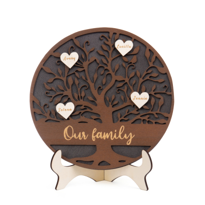 Wooden Family Tree Sign Engrave 4 Names Keepsake Gifts