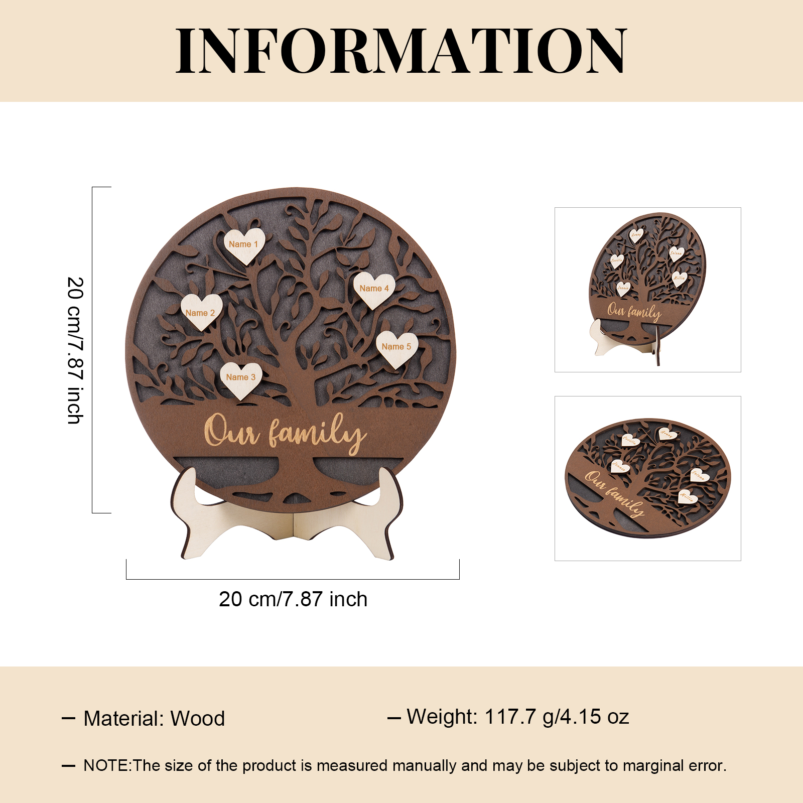 Wooden Family Tree Sign Engrave 5 Names Keepsake Gifts