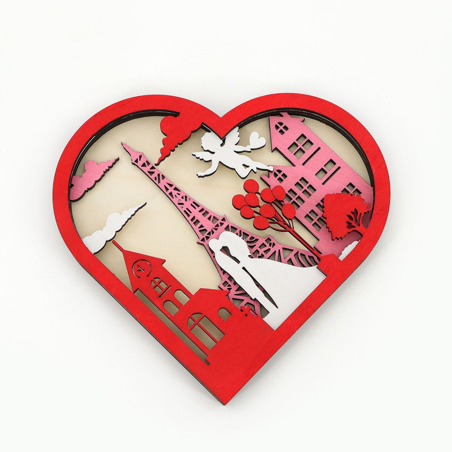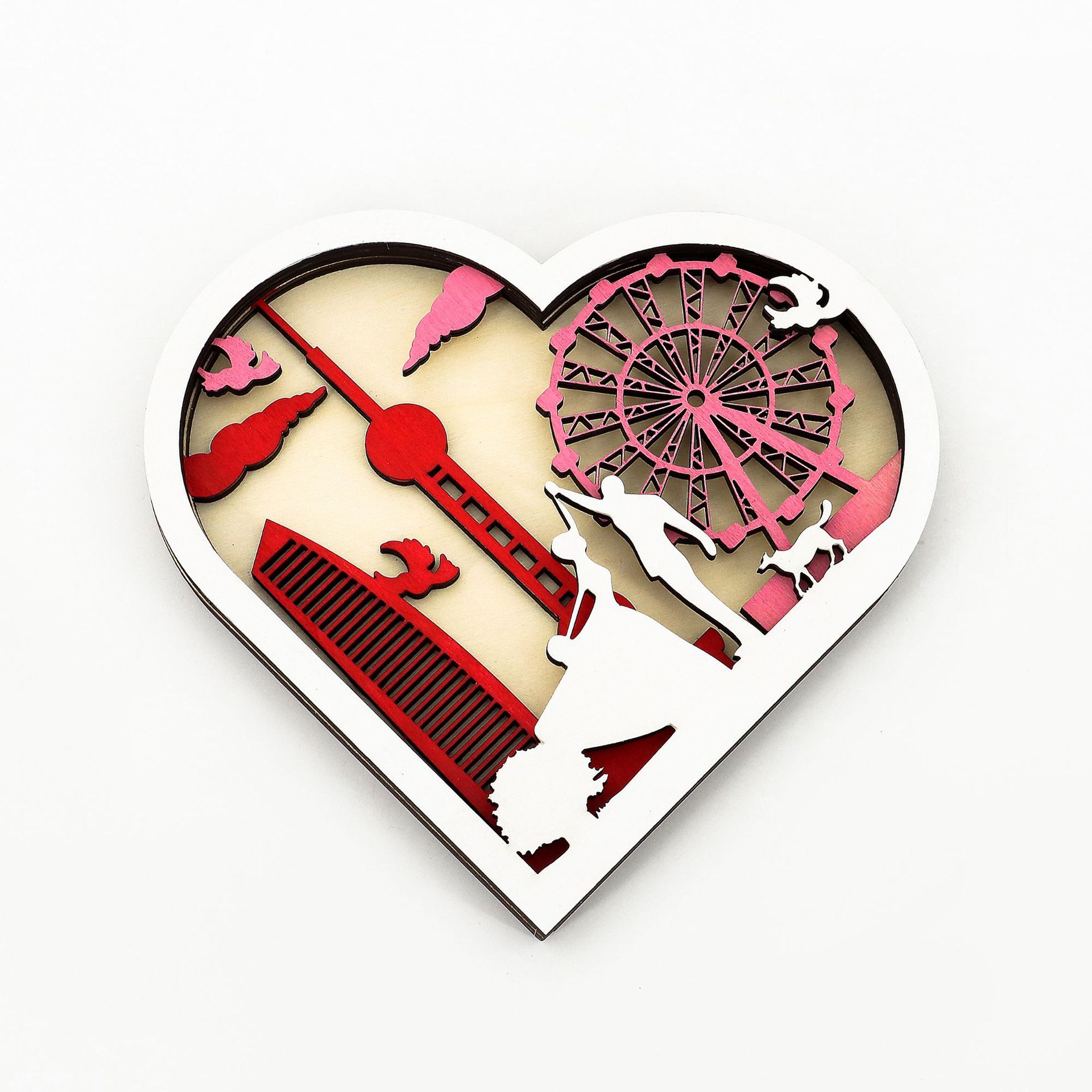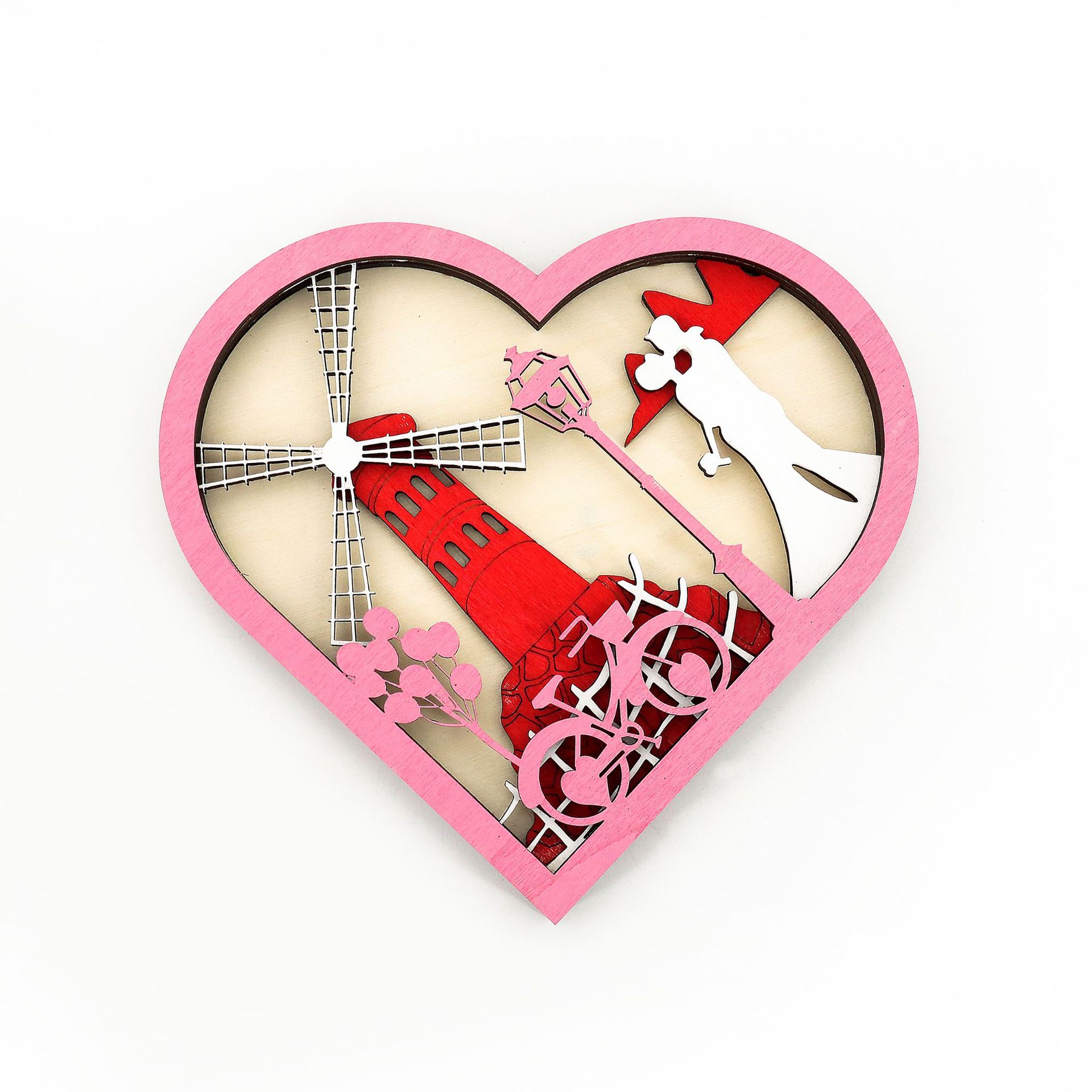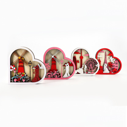Wooden Hollow Carved Heart Ornament Gift-Desktop Decoration European Style Frame For Couple
