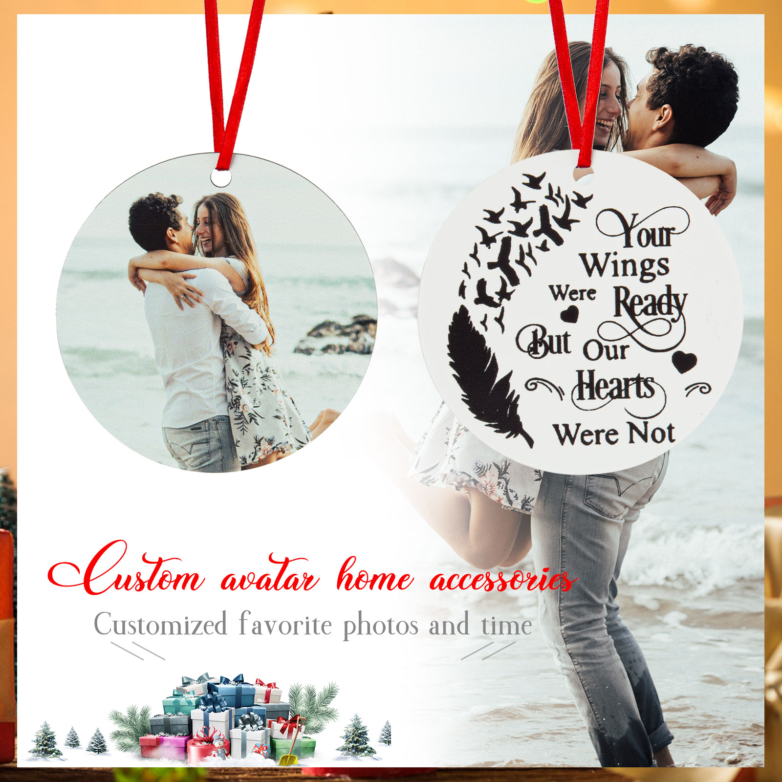 Personalization: A different Christmas. Customizable photos, which can be photos of father/mom, grandpa/grandma, boyfriend/girlfriend, uncle/aunt, good friend, or pet photos, any photos you like can be customized.